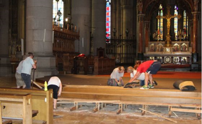 19. Juni: Kirchenbänke, Chorgestühl und Chororgel werden abgebaut und für die Restaurierung vorbereitet