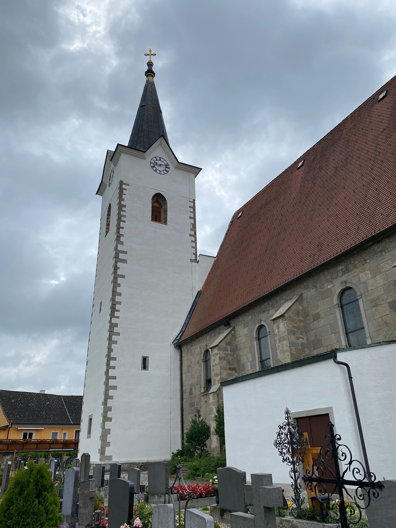Die Sanierung der Fassade der Schlosskapelle in Hagenberg wurde rechtzeitig vor dem Erntedankfest 2023 fertiggestellt. Die harmonische Auswahl der Oberflächenfarben hat das gesamte Erscheinungsbild verbessert.