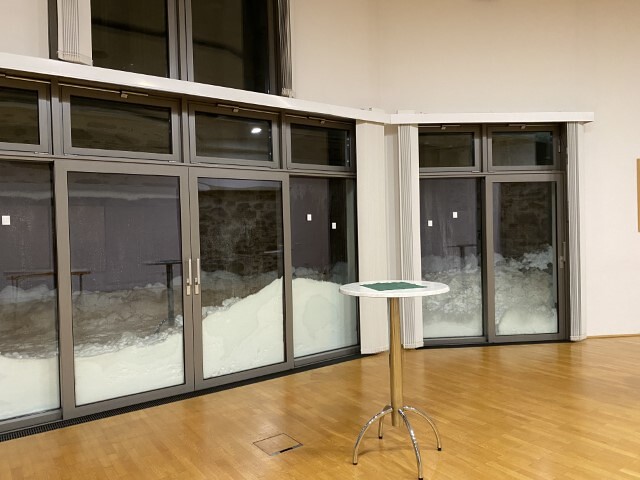 Eine "Lawine", die sich vom Kirchendach löst, macht eine Sperre des Südportals der Kirche notwendig.