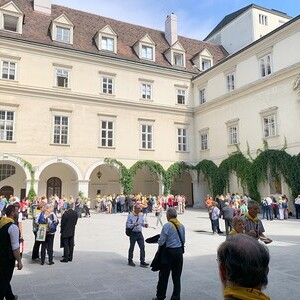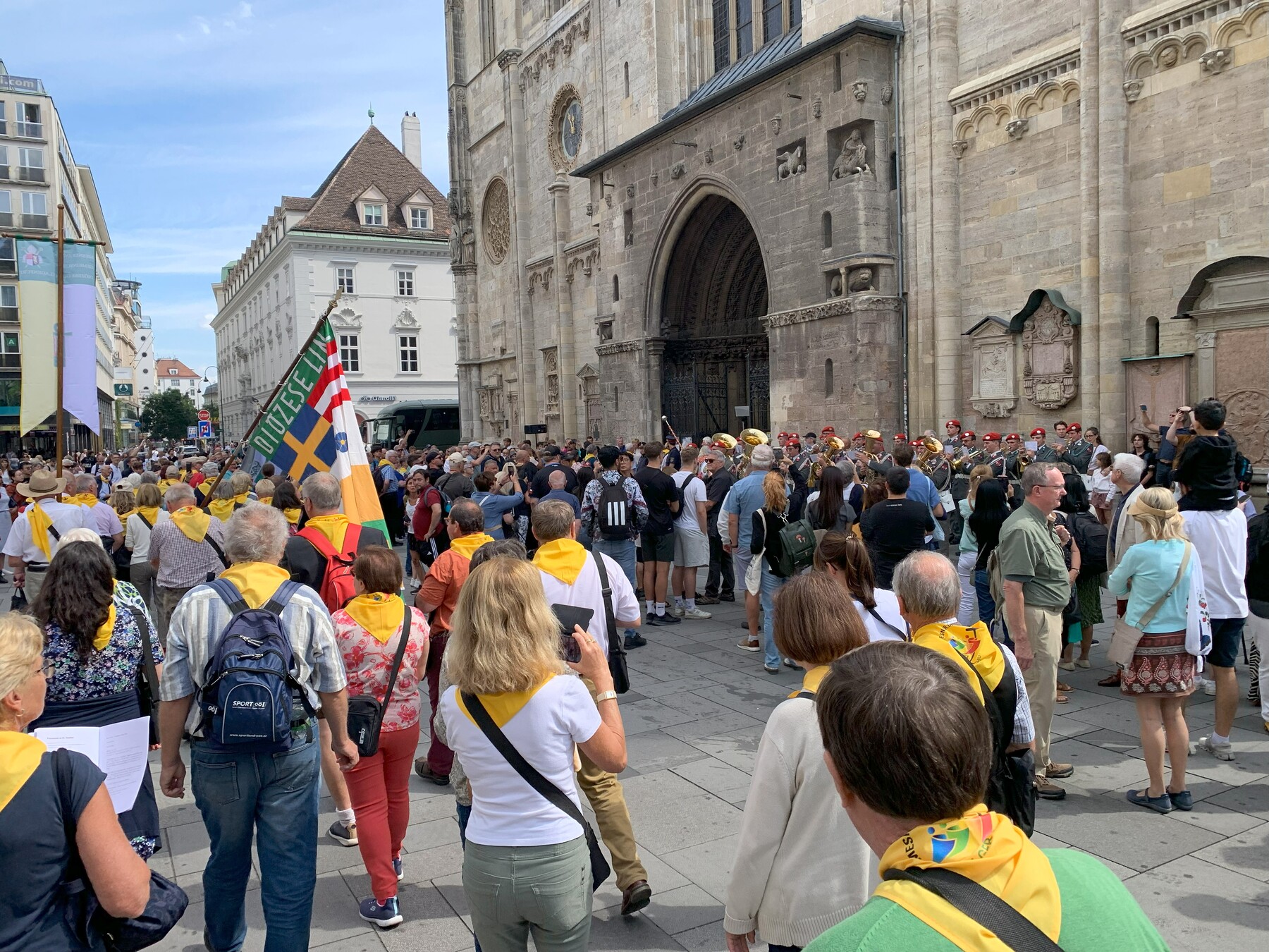 Am 25.08. wurde im Stift Klosterneuburg gestartet, wo im Rahmen einer Führung nicht nur die historische Bedeutung dieses Ortes für Österreich betont wurde, sondern auch die vielen Kunstschätze des Stiftes gezeigt und der großartige Ruf des stiftseigenen Weinkellers betont wurden. Nach einer von Msg. Juen, dem geistlichen Assistenten der österreichischen Mesnergemeinschaft, gestalteten Wortgottesfeier in der Stiftskirche durften wir den Tag bei kulinarischen Köstlichkeiten ausklingen lassen. Höhepunkt der Wallfahrt war aber der 26.08.. Alle Teilnehmer trafen sich in Wien bei der Franziskanerkirche, wo eine kurze Andacht (Statio) uns auf den Festzug von dort zum Stephansdom vorbereitete. Die Gardemusik des Bundesheeres begleitete den Zug durch die Straßen des inneren Wiens hin zum Stephansdom, Touristen säumten den Weg und staunten und der Einzug in den Dom war ein beeindruckendes Erlebnis. Eine sehr schöne, von Weihbischof Hansjörg Hofer geleitete Messe, aufwendig mitgestaltet von Chor, Bläserensemble und Orgel, machten diesen Teil der Wallfahrt zu einem großen Erlebnis. Zum Abschluss waren wir dann noch im Erzbischöflichen Palais zu einer Agape eingeladen, bevor wir erschöpft von den vielen großartigen Eindrücken zum Heimweg aufbrachen.