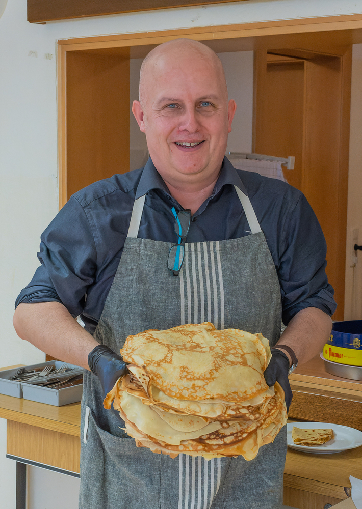 Ambros Gruber mit Crepes für die Sternsingerjause