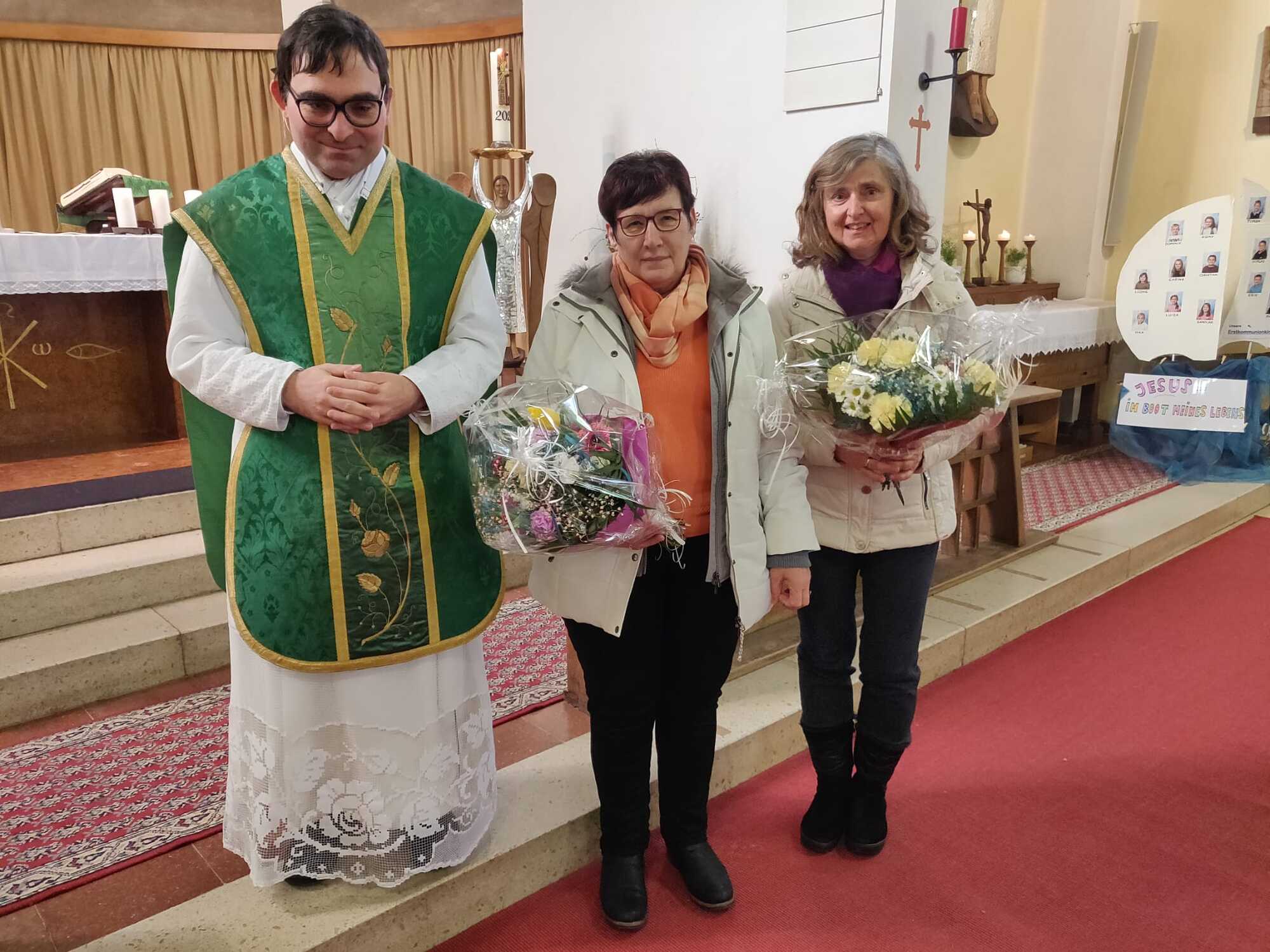 Pfarrer Maximilian bedankte sich bei beiden, dass ihnen die Pfarre und auch der lebendige Glaube sehr wichtig ist und überreichte jeweils einen Blumenstrauß.